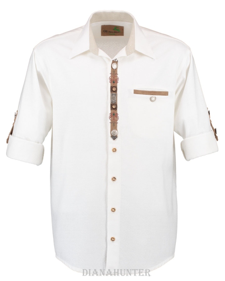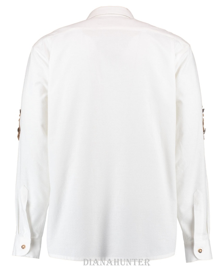 Elegantná biela poľovnícka košeľa s dlhým rukávom, možnosť zloženia rukáva a upnutia a tým vytvoriť košeľu s krátkym rukávom.