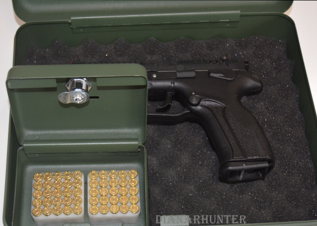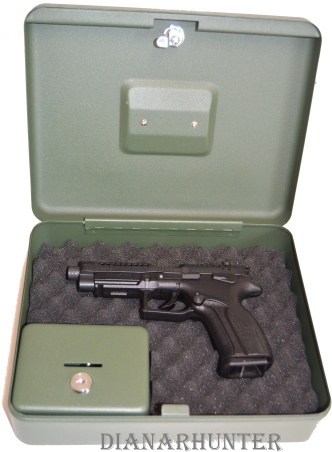 Úložný box na uloženie krátkych zbraní + box na náboje. Uzamykanie pomocou cylindrického zámku 2 klúče